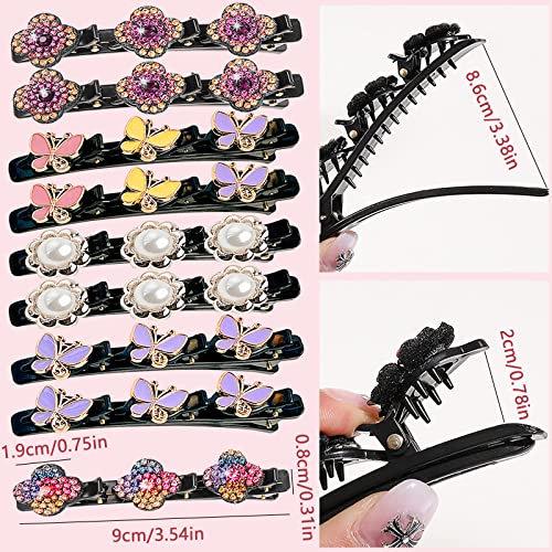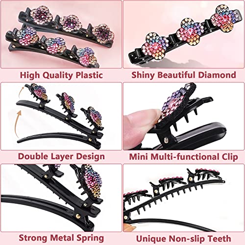 RUIJIE Fermagli per Capelli Intrecciati, 10 Pezzi Clip Mollette per Capelli in Cristallo, Fermaglio per Capelli con 4 Fiori, Strass Perni di Capelli, Accessori per Decorazione Capelli Donna Ragazza