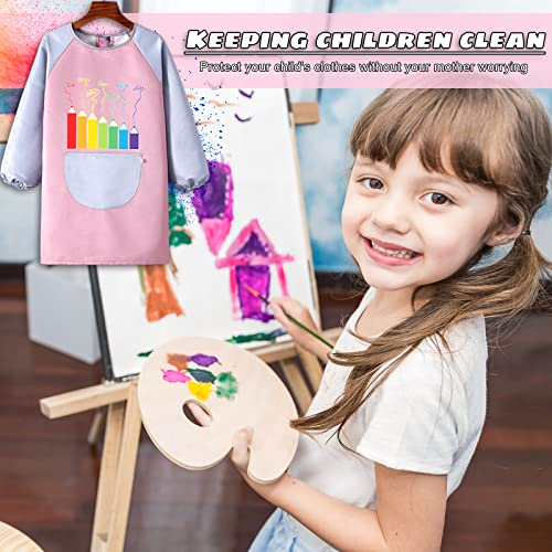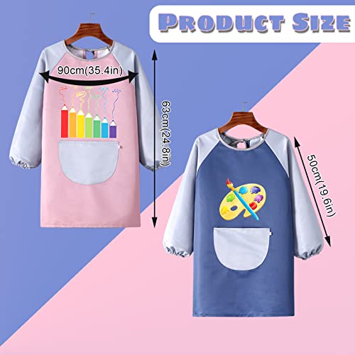 Ruikdly Grembiule Scuola Materna 2 Pezzi Grembiulino Asilo Bambino Grembiulino Maniche Lunghe Bambini Plastica Impermeabile con Tasche per Cucina Scuola Ragazza Ragazzo 3-7 Anni