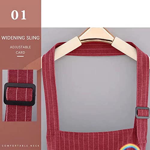 Ruikdly 2 Pezzi Grembiule Cucina Chef Grembiule Cucina cotone Grembiule da Ristorante Grembiule Cucina impermeabile Regolabile Grembiuli con tasche per Donna Uomo Cottura Regali(Rosso Marrone)