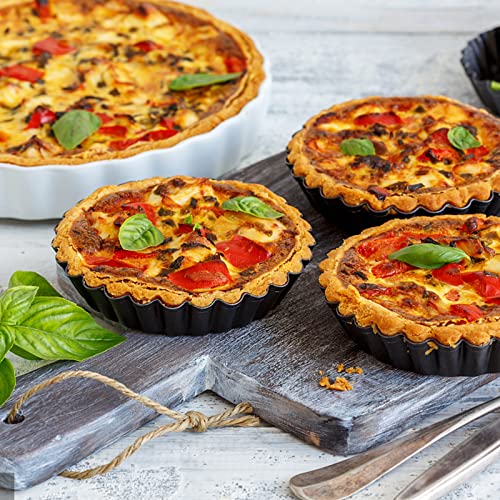 Ruikdly 8 Pezzi Stampi per Crostatine, Stampo Crostata da 10 cm, Teglia Crostata Fondo Removibile, Antiaderenti Forme per Crostatine Per la Cottura di Dolci Crostata