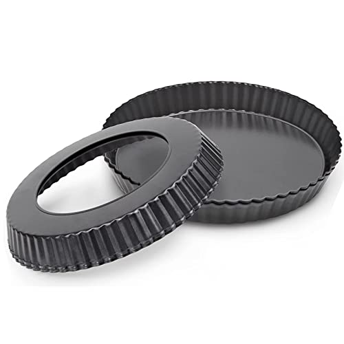 Ruikdly 2 Pezzi Teglia per Crostata 22 cm Teglia per Crostata Fondo Removibile, Stampo per Crostata Rotondo, Rivestimento Antiaderente e Fondo Rimovibile, Ideal para Hacer Pizzas, Pasteles