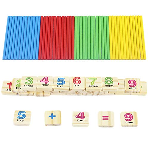 Ruikey bambini giocattolo in legno lettere bastoncini di conteggio del numero di matematica Teach aiuto strumento di apprendimento per bambini in età prescolare istruzione con scatola di metallo