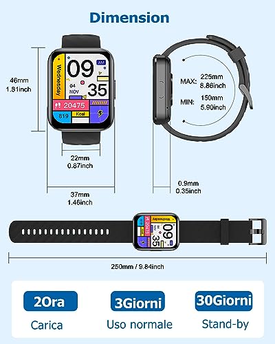 ⭐️Notifiche dei messaggi: Tutte le notifiche ricevute sul telefono, come chiamate, SMS, Whatsapp, Facebook, Snapchat, e-mail e altre notifiche di messaggi APP, saranno notificate in tempo dallo smartwatch, per non perdere mai nessun messaggio importante.