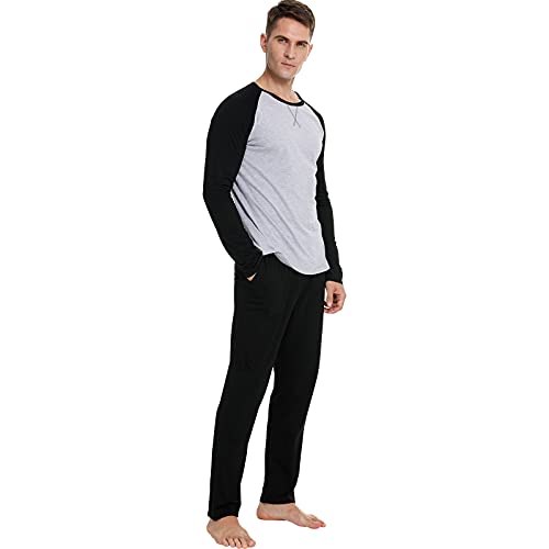 RUIRUIY Pigiama Uomo Cotone Lungo Pigiama Uomo Invernale Pigiami Due Pezzi da Uomo Maniche Lunghe Pantaloni Lunghi Morbido Pigiama Uomo Completino Casual per Casa (Black, S)
