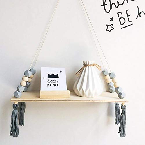 Ruiting Bead Mensola Grigio Stile Nordico Legno Appeso Float mensola della cremagliera della Decorazione della casa della Nappa Parete attrezzata