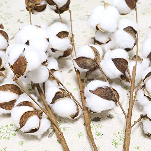 Ruiuzioong - Steli di cotone essiccato naturale, stile fattoria, fiori artificiali, riempitivi, decorazione per feste (3 pezzi, vapore)