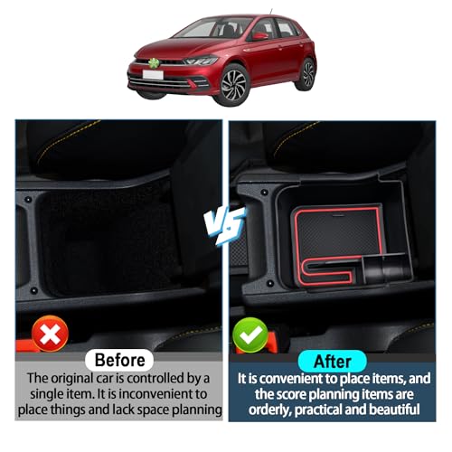 [Qualitài] VW Polo Console Centrale Portaoggetti Realizzato con materiali ad alta qualità ABS, resistenza all'usura e graffi, buona resistenza al calore, bassa resistenza alla temperatura e non facile da deformarsi.Tappetino in gomma antiscivolo ecologico, per ridurre il rumore causato dalle collisioni e facile da pulire.