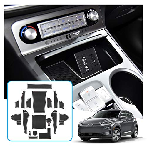 Ruiya per H yundai Kona Elektro 2020-2022 Antiscivolo Interno Tappetini,Kona EV Tappetini in Gomma per Auto Tappetino Bracciolo Protezione Scanalatura Porta Interni Tappetini Gomma Kona EV Accessori