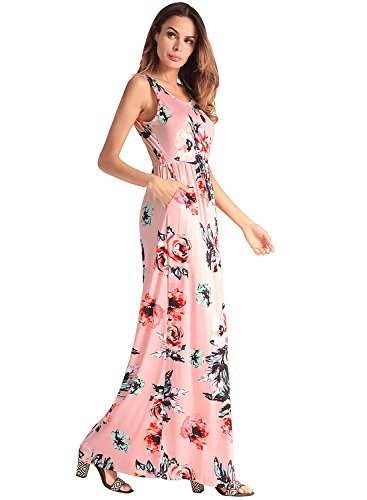 Caratteristiche: senza maniche, scollo O', stampa floreale, Boho abito lungo con tasche