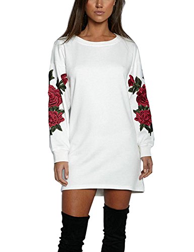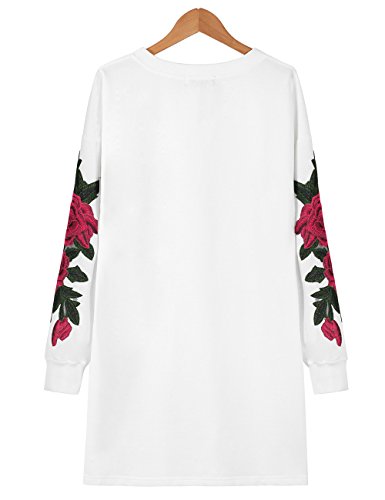 Stile: manica lunga, collo rotondo, ricamo, felpa midi