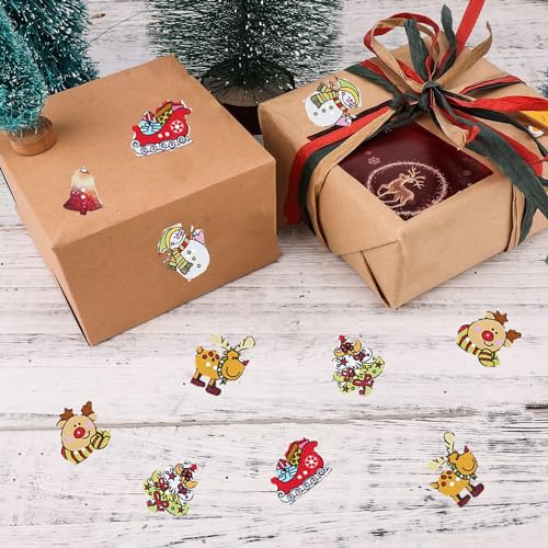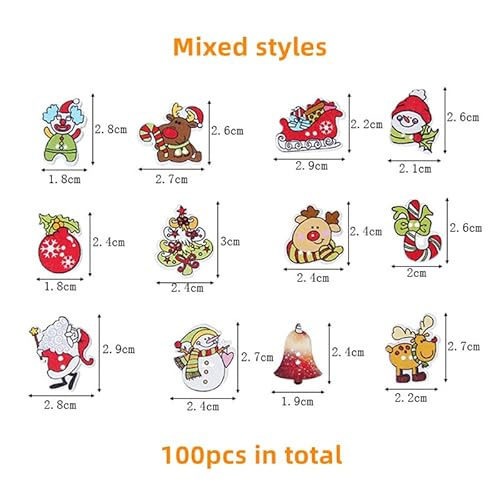 RUIYWEN 100 pezzi Bottoni in Legno di Natale Bottoni Artigianali di Forma Misti per Tessuto da Cucire Vestiti DIY Decorazione di Natale (Bianco)