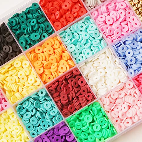 RUIYWEN 4275 pezzi Perline Piatte Rotonde in Argilla Polimerica 6mm Perline per Fare Bracciali Collana Adulti Bambini Gioielli Regali Artigianato Fai da Te (20 Colori con Accessori)