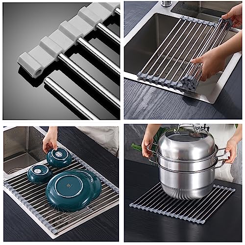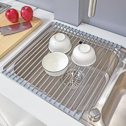 RUIYWEN Scolapiatti da Lavello Acciaio Inossidabile 304 Pieghevole Superiore del Lavandino Multiuso da Appoggio per Piatti Tazze Verdure Frutta in Cucina (43x35cm, Grigio)