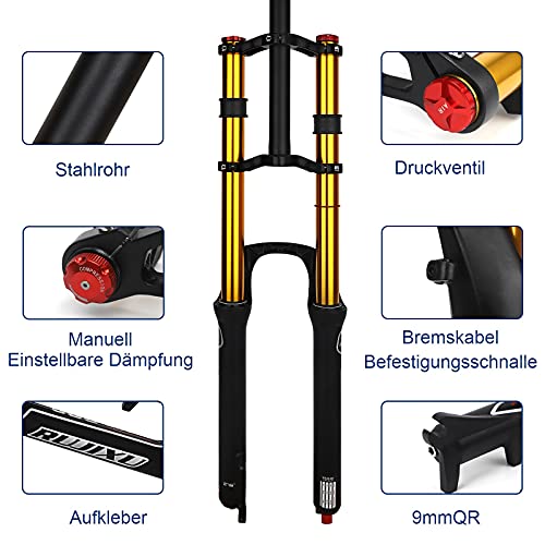 RUJIXU Forcella Anteriore Mountain Bike 26 27.5 29 Pollici Forcella Ammortizzata Bici MTB Forcella in Discesa Pressione dell'Aria Dritto 2400g DH Ammortizzatore Bicicletta Regolazione Rimbalzo