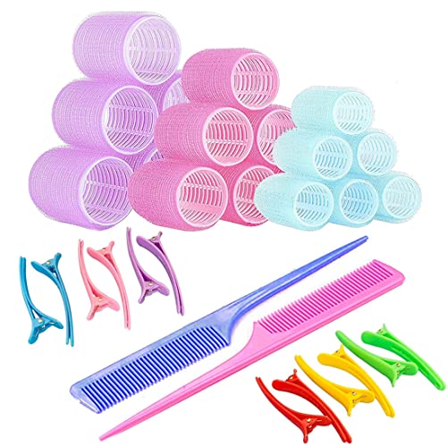 Set di 32 rulli per capelli, 18 bigodini in velcro, 12 clip a becco d'anatra e 2 pettini per parrucchiere fai da te, multicolore