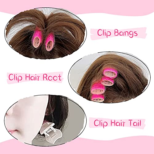 Rulli per capelli con clip, 4 clip istantanee per volumizzare i capelli, bigodini in velcro per bigodini per capelli Rullo per capelli autoaderente Volumizing Hair Root Clip per ragazze(rosa)