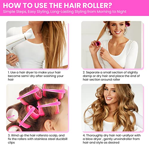 Facile da usare e da rimuovere: prendere una quantità adeguata di capelli, avvolgere le punte dei capelli intorno al rullo e avvolgerle intorno al cuoio capelluto. Fissare con una clip a becco d'anatra. Inumidire leggermente i capelli prima dell'uso, lasciarli asciugare naturalmente o utilizzare una ventola per risultati migliori.