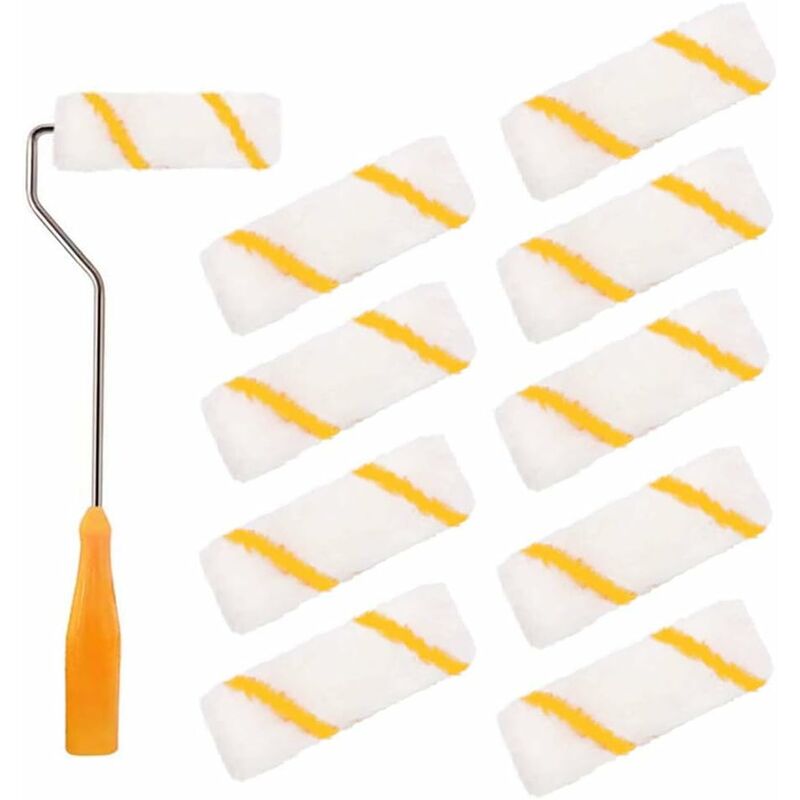 Set di rulli di vernice: compresi 10 rulli di vernice a strisce gialle e 1 cornice di rotolo. Materiale: i rulli di vernice sono in poliestere e il telaio del rullo è realizzato in plastica e metallo. Dimensione: il rullo di vernice misura circa 3 x 10 cm, il telaio del rullo è di circa 30 x 10 cm. Set di manutenzione di vernice convenienti: il piccolo rotolo a dipinto può spazzolare piccole zone Difficile da raggiungere, la maniglia della spazzola a rulli della vernice è antiscivolo e confortevole, il pennello a rulli di vernice è flessibile e facile da usare. Applicazione: Adatto per la vernice su angoli e piccole aree, ideale per decorare pareti, pavimenti, soffitti, porte, armadi, cordoli e linee. Rulli aweissile Painting 10cm 10 pezzi Roll Paint Set Piccolo rullo di vernice con 1 porta a rulli Decorazione domestica da 30 cm per soffitto a parete Piano del soffitto a soffitto Specifiche: Materiale: materiale poliestere, plastica e metallo. Dimensioni: rullo di vernice: circa 3 x
