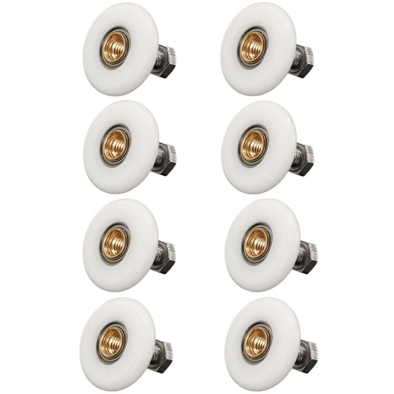 Un set di 8 rulli per porta doccia con un diametro di 19 mm con viti. Adatto per la maggior parte delle cabine doccia e porte doccia scorrevoli. Realizzato in nylon di alta qualità e acciaio inossidabile per una maggiore durata.