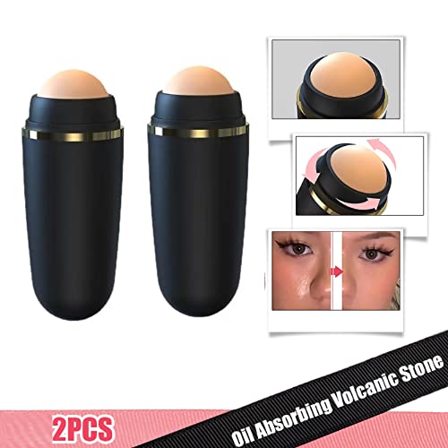 Rullo Assorbente Dell'Olio,Volcanic Roller,Rullo Assorbente Per Il Viso,Portatile Rullo Viso Assorbente di Pietra Vulcanica,Oil Absorbing Roller,per Il Controllo Dell'Olio e Rimuovere l'Olio,2 Pezzi