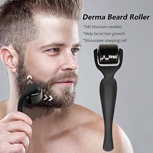 Rullo Barba, Beard Roller, Crescita Barba, 0.5MM 540 aghi di titanio, Rullo per la crescita della barba nero opaco, Stimola la crescita della barba e dei capelli