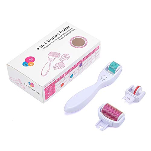 3 in 1 Derma Roller Kit con 3 teste a rullo separate di diversi aghi da 0,25 mm, 0,5 mm, 1,0 mm, utilizzare un rullo derma per ottenere 3 diversi aghi, e il rullo di lunghezza diversa è possibile utilizzare per il corpo del viso degli occhi, diversi tipi di rullo sarà più migliore per la pelle, ridurre le lesioni cutanee.