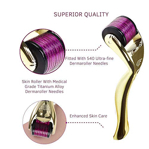 Pro 540 Rullo facciale tipo dermaroller con micro-aghi in titanio per la cura della pelle, per trattamento delle rughe del viso, perdita di capelli, smagliature, ricrescita dei capelli, kit professionale per micro needling, con custodia, 0,5 mm