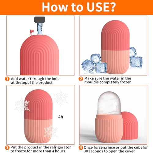 Rullo di Ghiaccio Facciale 2pcs, Ice Face Roller in Silicone, DIY Ice Roller Viso per Rassodare la Pelle, Alleviare Gli Occhi Gonfi, Aiutare a Ridurre i Pori, Alleviare il Dolore (Rosa)