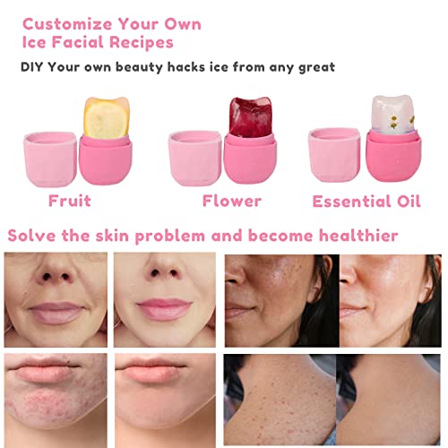 Rullo per ghiaccio per viso Facial Ice Roller, Mini Silicone Facial, stampo per cubetti ghiaccio, stampo per cubetti ghiaccio, stampo riutilizzabile per viso e occhi, rughe anti-invecchiamento (rosa)