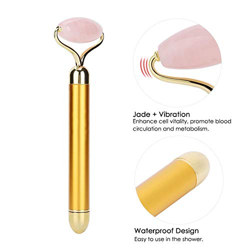 Rullo di giada, rullo di giada elettrico per viso e collo bellezza impermeabile naturale massaggio rullo di pietra di giada massaggio facciale strumento di massaggio vibrazione elettrica