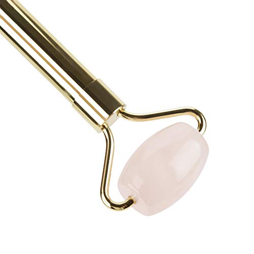 Rullo di giada, Rullo di massaggio facciale di giada al quarzo rosa a doppia testa Rullo di bellezza per il collo dell'occhio del viso per dimagrire e rassodare(Asta di metallo oro, scatola regalo)