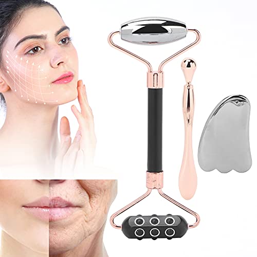 Rullo Massaggiante con Raschietto Gua Sha, Massaggio Viso, Terahertz, Mini Rullo per Il Viso, Massaggiatore per Viso, Occhi, Collo, Tonificante, Massaggio