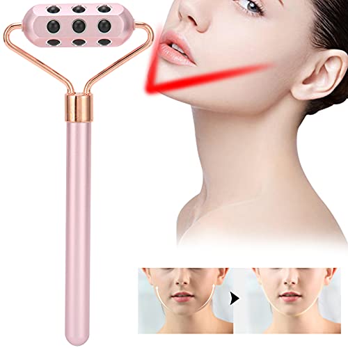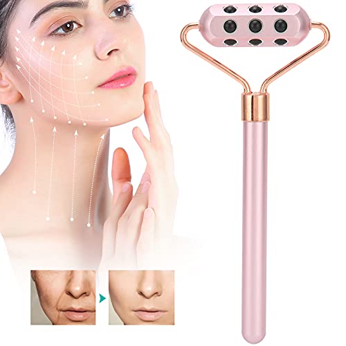 Rullo Massaggiatore Viso, 18 Pietre di Germanio, Strumenti per il Massaggio Viso,Lega di Alluminio, Collo e Corpo per Rilassante, Manuale Portatile, per la Cura della Pelle del Viso (Rosa)