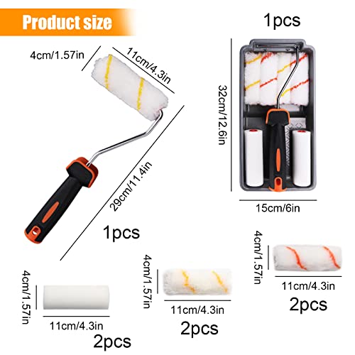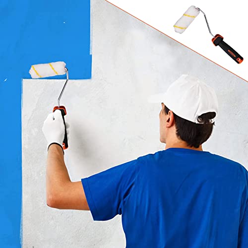 Set di Rullo Pittura 8 Pezzi Kit de Rulli Piccoli Rullo di Vernice Pennello Set di Pennelli per Rullo da Pittura Per Lavori di Restauro Pittura e Ristrutturazione per Muro di Casa Scuola e Ufficio