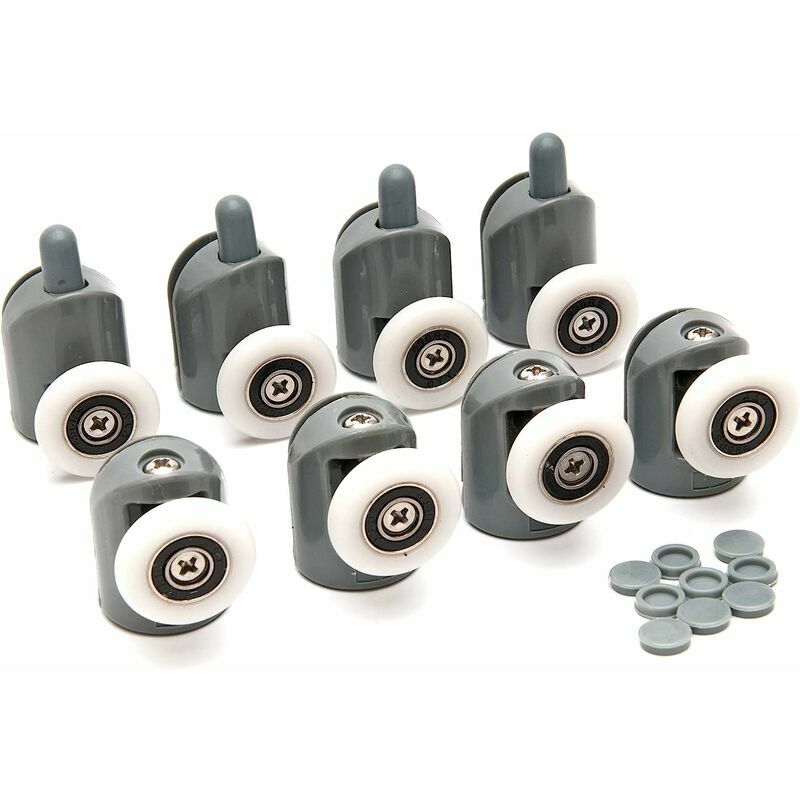 I rulli della porta della doccia sono realizzati con asta in acciaio inossidabile di alta qualità e materiale plastico ABS, resistente alla ruggine e durevole.Dotato di vite di copertura in plastica. Diametro della ruota: 18-29 mm.Dimensione minima del foro sul vetro: 4 mm. Spessore massimo del vetro: 6 mm. Un set di 8 ruote per porta della doccia con 4 rulli superiori e 4 rulli inferiori. Le parti della porta della doccia sono facili da spostare e installare. Puoi anche spostare facilmente la porta scorrevole, risparmiando spazio, più bello. Applicabile a doccia, cabina massaggi, bagno, vasca idromassaggio e altri accessori per mobili.