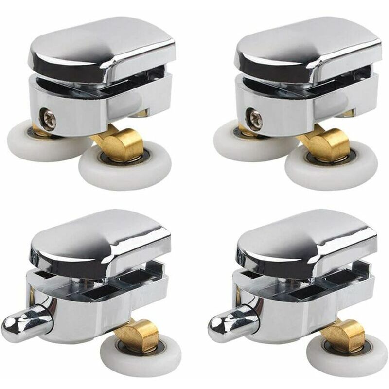 Contenuto della confezione: set di 4 rotelle doppie per porta della doccia (2 sopra e 2 sotto). (consigliato per foro vetro da 14 mm) Rulli per porta zincata: doppi rulli per porta doccia superiore e inferiore da 23 mm (diametro), superficie placcata, antiruggine;