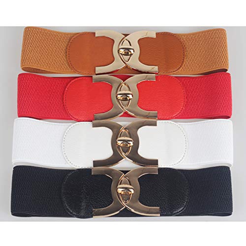 Ruluti Catena Regolabile Vita Cinturino 'inarcamento di Vita Larga Cinghia Stretch Retro Cintura per Abito (Bianco)