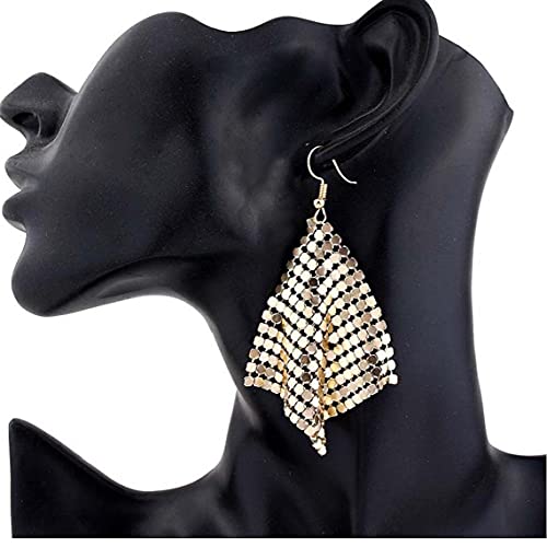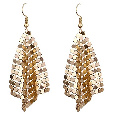 Ruluti Mesh Grid Orecchini delle Donne Paillettes in Metallo Lungo di Goccia Ciondola Gli Orecchini