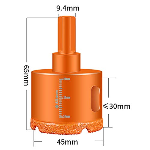 Rummyluck Punta da Trapano diamantata a Secco - 45mm Seghe a Tazza di Piastrelle Strumento di Apri Fori Brasato per Vetro, Porcellana, Ceramica, Marmo, Granito