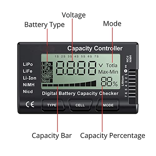 RUNCCI -YUN 2.1 "RC cellulare Capacita' Meter-7 Digital Battery Checker/Controller per NiCd/NiMH/LiPo/LiFe/Li-ion