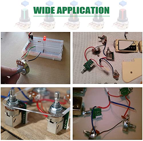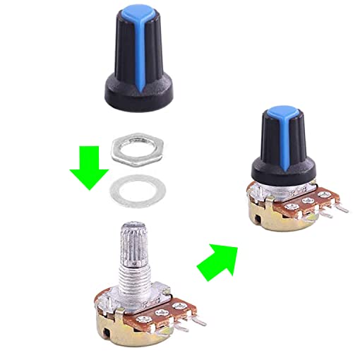 ★ 【Caratteristica del prodotto】: Si tratta di potenziometri lineari a 3 porte a cono rotante singolo lineare con manopola WH148 standard. Tutti i resistori da 3296 W sono etichettati con il valore in modo da poter trovare facilmente ciò di cui hai bisogno. 5 tappi colorati per una facile identificazione. Inoltre viene fornito con dadi e rondelle che funzionano bene con loro.