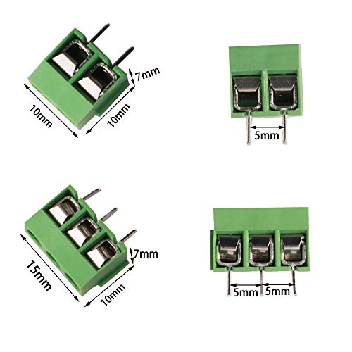 RUNCCI-YUN 80 Pezzi 5mm 10A 300V 2 Pin / 3 Pin Morsettiera a verde PCB Blu per Prototipo PCB Scheda Circuito Stampato (65pz 2 Pin, 15pz 3 Pin)