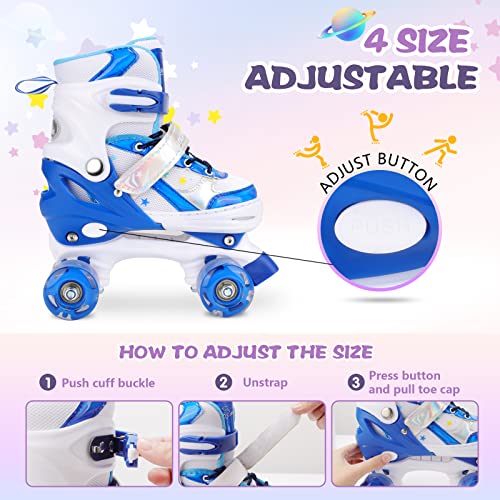 Runcinds Pattini a rotelle per bambini per bambine, bambini, ragazzi, 4 misure regolabili con ruote illuminate