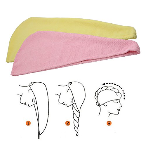 Runer Dry Hair Cap, capelli essiccazione asciugamano in microfibra capelli turbante (set di pezzi, rosa e giallo)