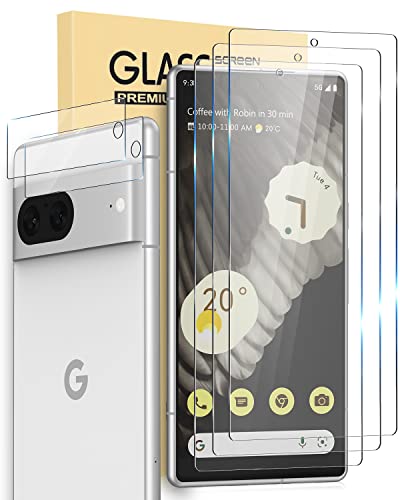 Runiin 3 Pezzi Vetro Temperato per Google Pixel 7 6,3 Pollici con 2 Pezzi Pellicola Protettiva Fotocamera Posteriore, Pellicola Prottetiva Anti Graffio, Senza Bolle, Durezza 9H, HD Chiaro