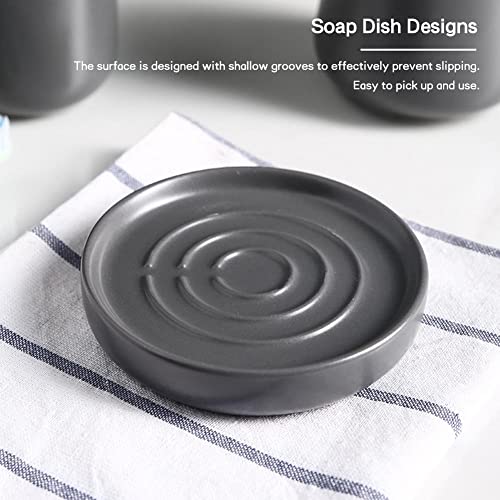 RUNLAIKEJI Set di 4 accessori in ceramica per camera da letto, set di accessori da bagno semplici con dispenser di sapone, portasapone, 2 tazze per collutorio (grigio)