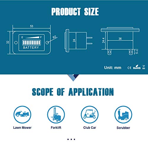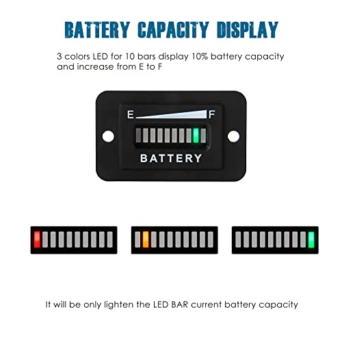 Runleader 12/24 V Indicatore dello stato di carica della batteria, Completo per indicatore della batteria al piombo (Trojan type non incluso), Tester della batteria, Avviso di scarica della batteria, Uso per carrello da golf, Carrelli elevatori, Yamaha