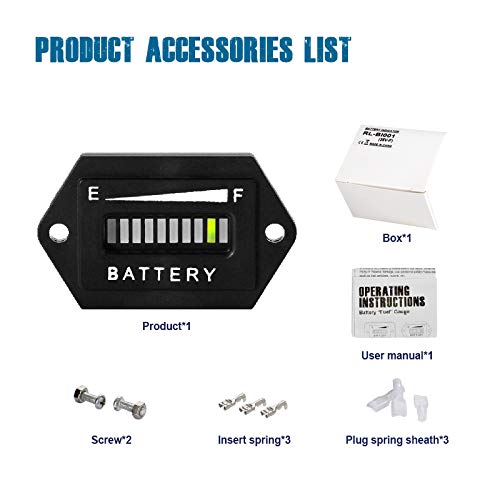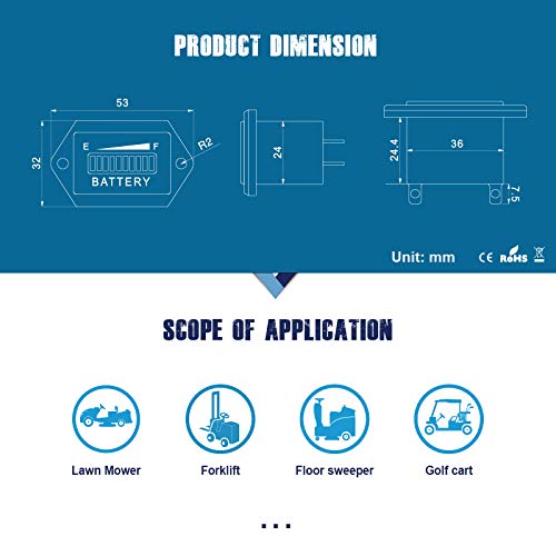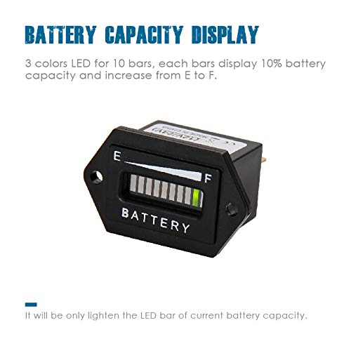 Runleader 12/24V Indicatore del livello di carica della batteria, Indicatore della batteria al piombo, Avviso di scarica della batteria per golf cart, Carrelli elevatori, Star Car(BI001-12/24V)