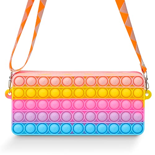 Runmeihe Pop It Fidget Toy Bubble Rainbow Bag per donne ragazze borsa a tracolla sensoriale alleviare lo stress giocattoli piccola borsa push pop per bambini, adulti (1 pezzo) (Macaron)