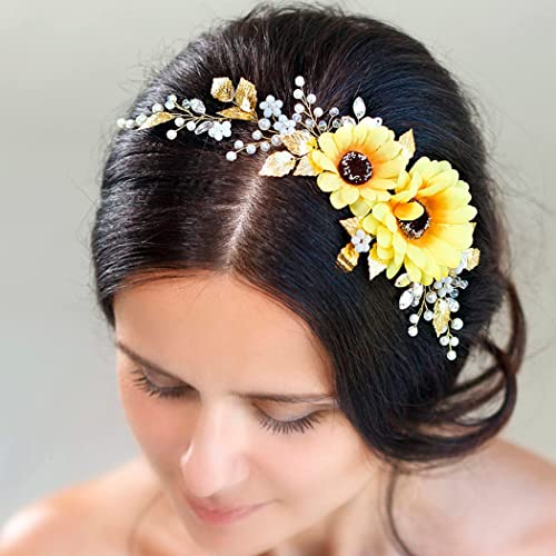 Runmi Accessori per capelli da sposa per capelli da sposa con perle dorate per donne e ragazze